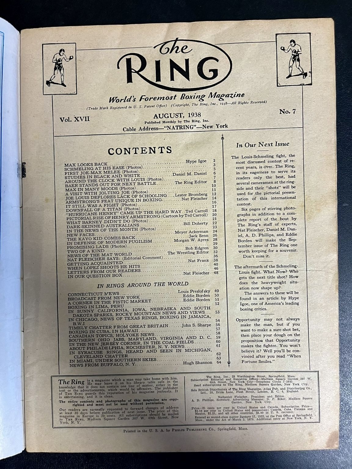 1938 August - The Ring Magazine - Tony Galento on Cover