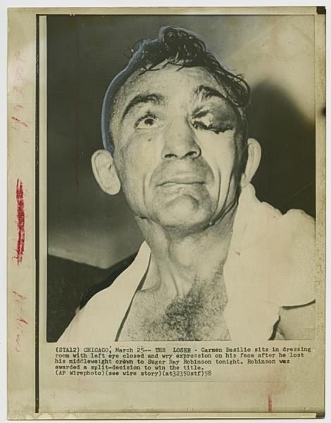 1958 CARMEN BASILIO vs SUGAR RAY ROBINSON II Vintage Boxing Photograph CUT EYE