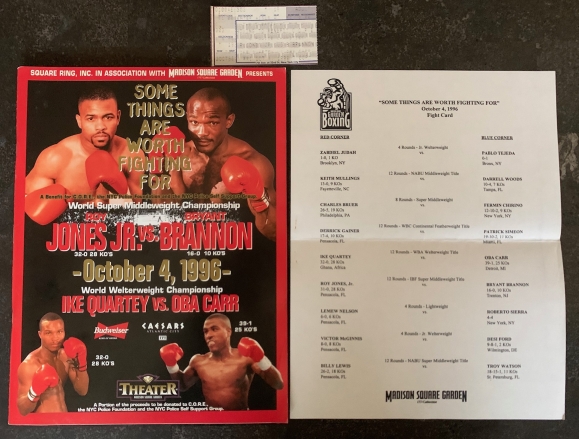 1996 ROY JONES JR. vs BRYANT BRANNON Onsite Boxing Program, Ticket, Bout Sheet