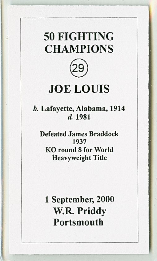 Joe Louis - 2000 W.R. Priddy Antiques "50 Fighting Champions" Boxing Card